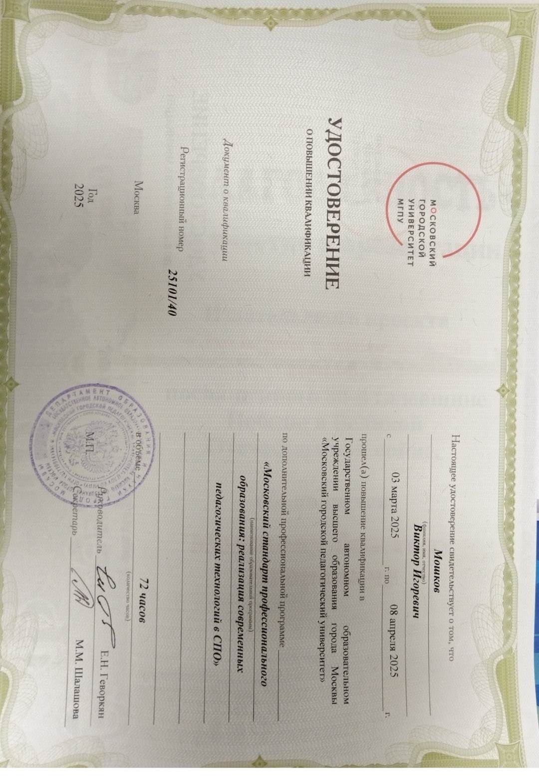Портфолио преподавателя Мошкова В.И.